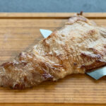 Jetzt schaut man sich das Fleisch genauer an, die „dicken“ Stücke Fett abschneiden und zur Seite legen. Alles andere an Fett kann bleiben (gibt dem Fleisch den Geschmack).