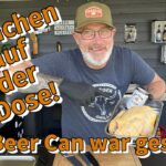 • Zwei bis Drei kleine Schluck aus der Dose weg trinken und den Knoblauch klein schneiden und in die Dose stecken.